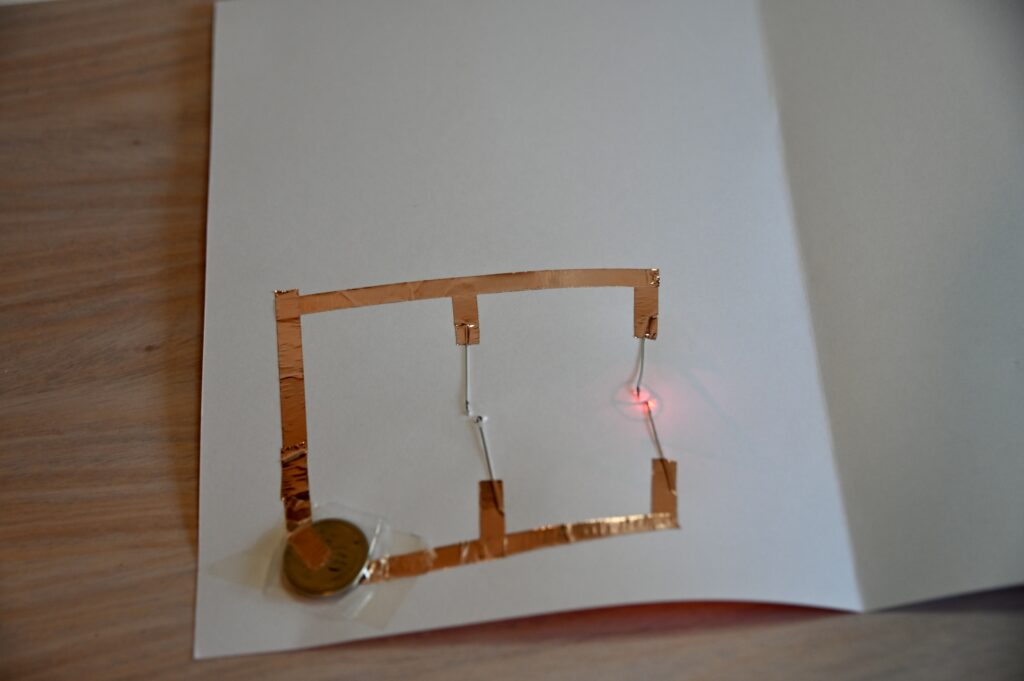 We left a gap in the circuit that is only closed wheh the card is closed. This means the LEDs light up only when the card is closed and the circuit is complete.