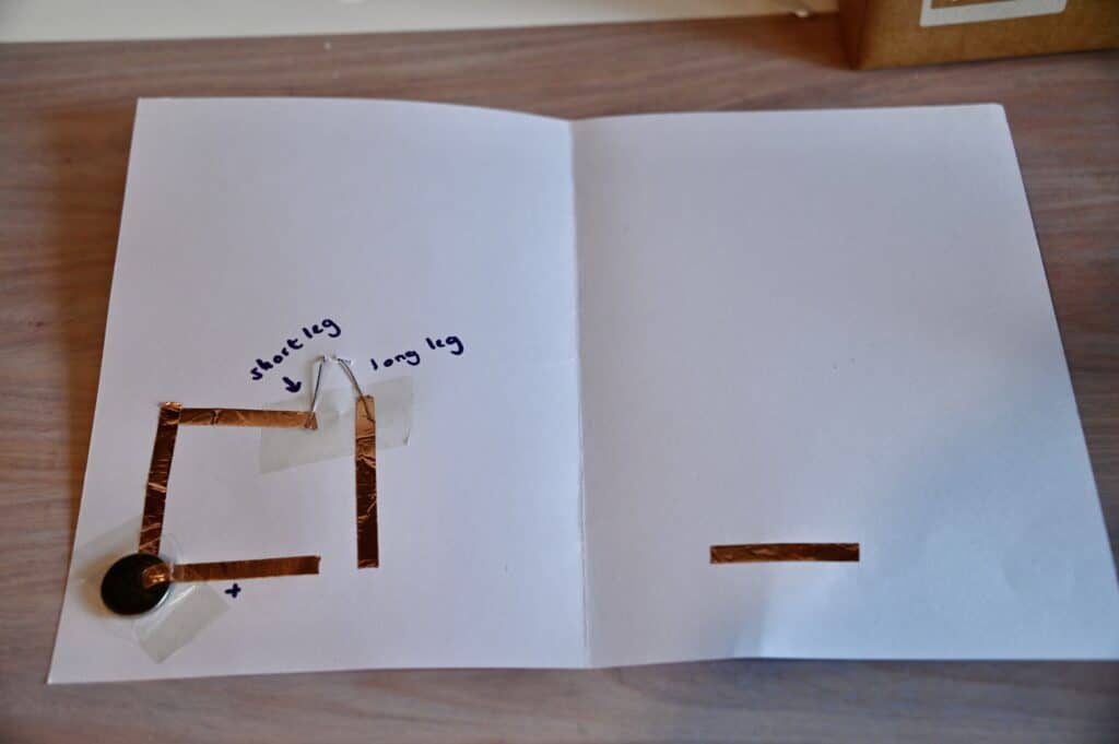 Make sure the copper tape isn't touching itself by the LED legs or the battery as this can cause a short circuit.