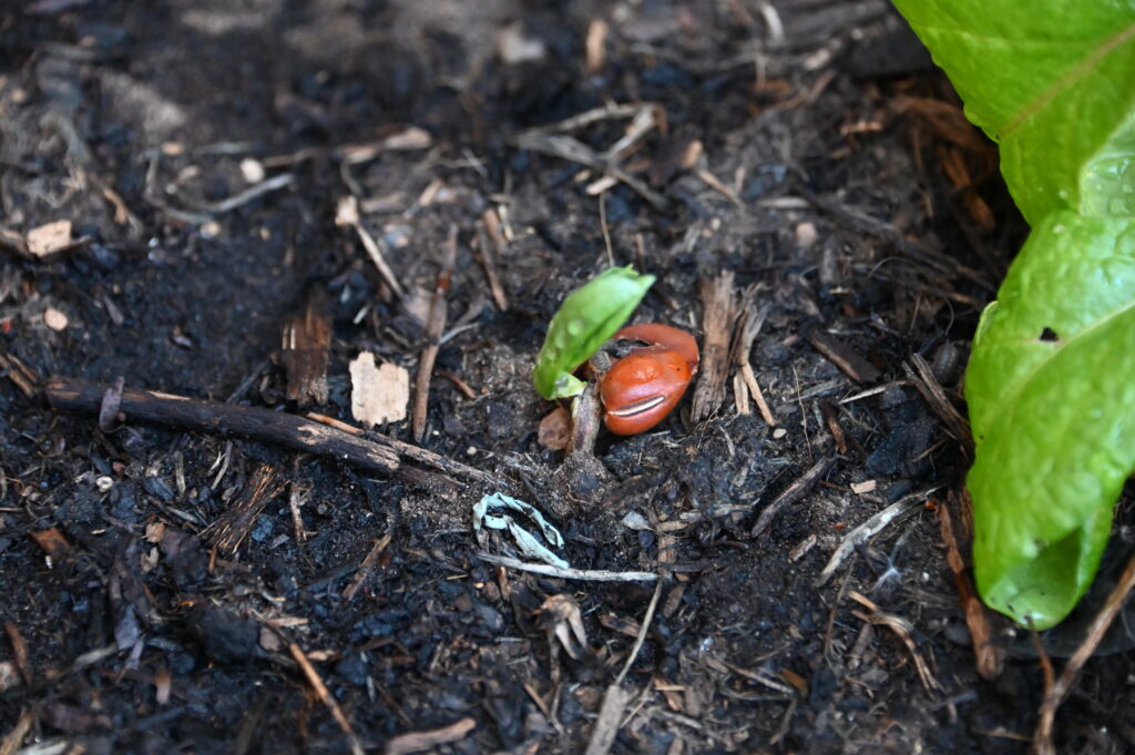 - The first tiny root. This is called the radicle and sprouts first to anchor the seed in the soil.