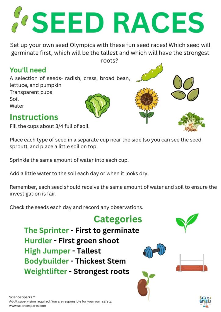 If you're looking for a spring science project, the Great Spring Seed Race could be just the thing! It's not a fast race, so you'll need a few weeks and a little patience.