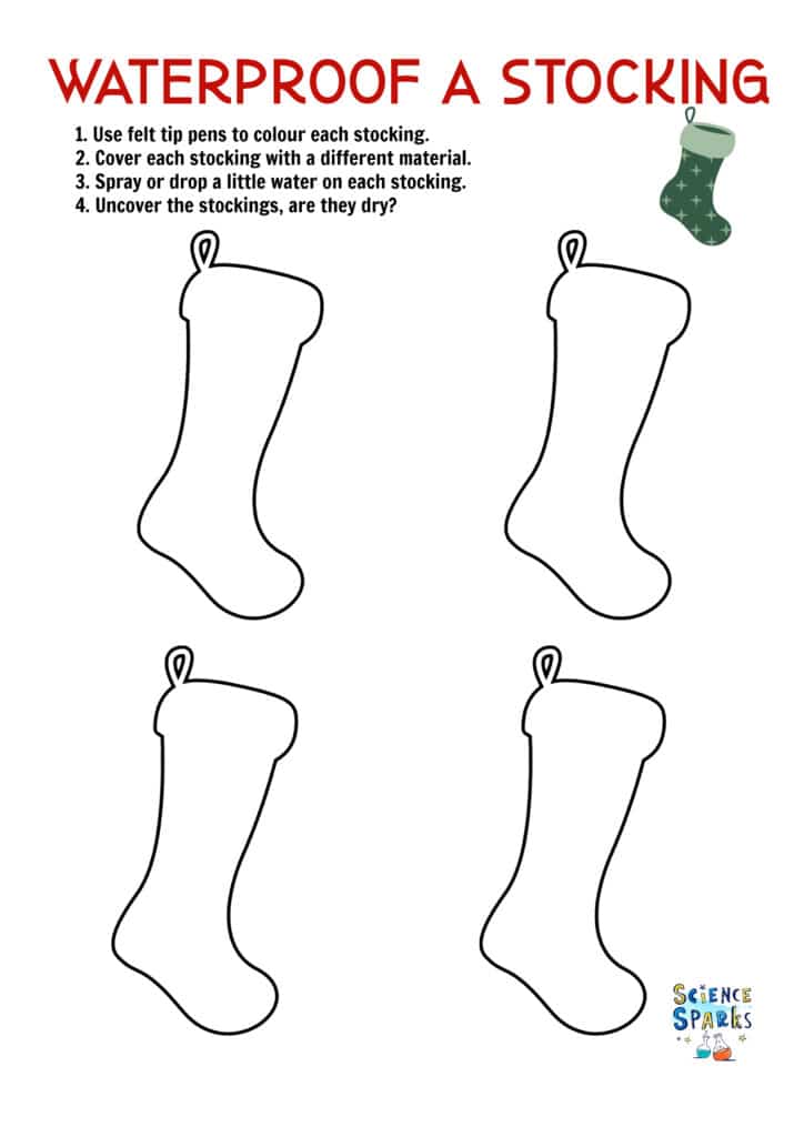 The idea is to cover each stocking with a different material, spray it with water and then check to see if the stocking is still dry.